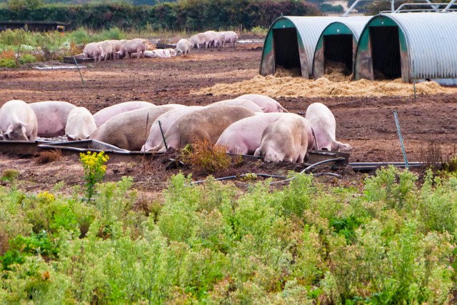 It’s a ewe, and she’s fuzzing to be petted. The ram in the pen is getting all the attention πŸ”ΌπŸ”½ Locally, our pigs live in fields with these huts for shelter