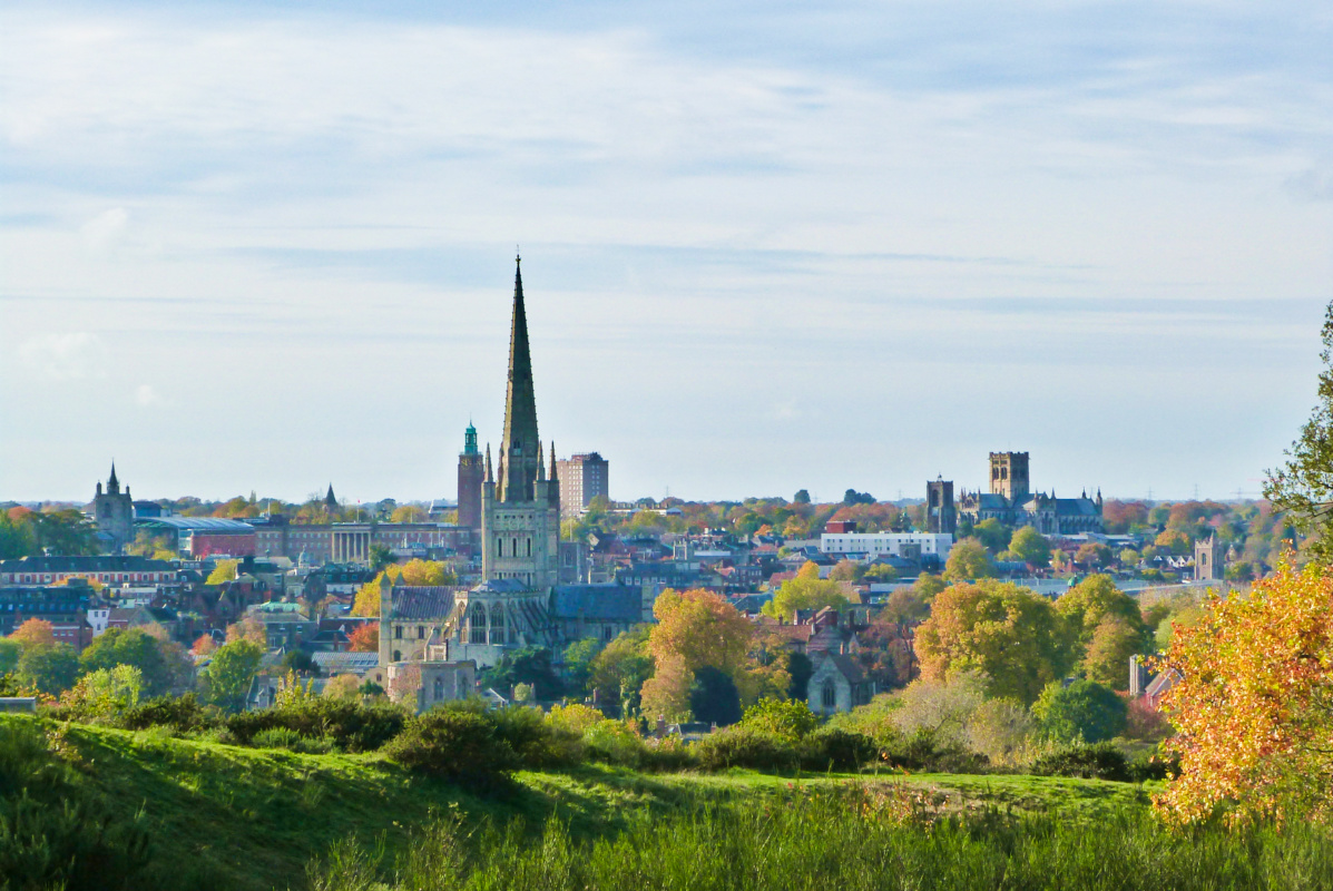 🔼 Standing at the edge of Mousehold Heath provides the best ever view over the city of Norwich. Although this is the last photo taken, I’m using it to preface the post and help set the scene. 🔽 One of the many sharp bends on the road out of the city and up to the heath; they help to keep the gradient ‘easy’. Here we’re blinded by that dazzling sunlight