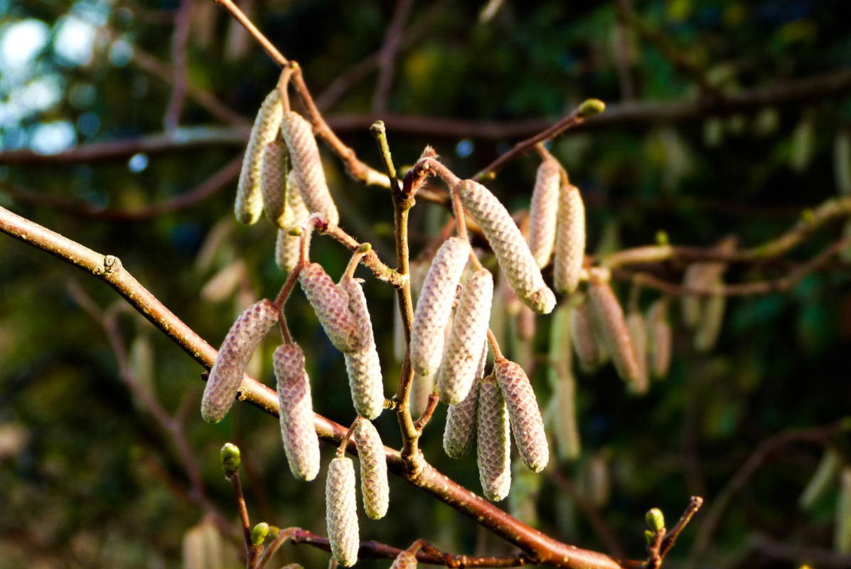 🔼 Red clover, still in flower 🔽 Catkins? This early?