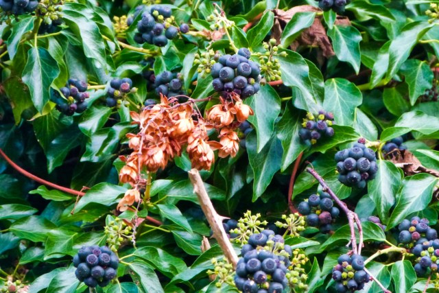 ๐ฝ A delightful find along the village lane: ivy in berry all tangled with a hop vine
