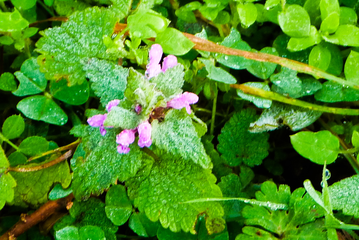 Marked by the mist 🔼 The sturdy red deadnettle in flower 🔽 Grasses can look like Christmas decorations when the weather conditions are right ⏬