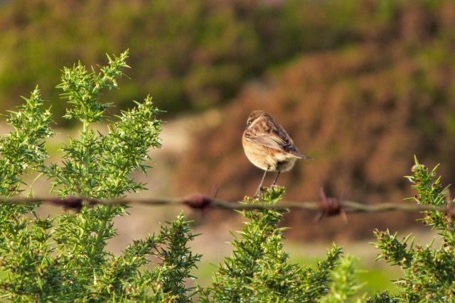 I suspect your ‘sparrow’ is a female or juvenile Stonechat, but I’m worried about its lack of white wing-patch… my second thought is reed bunting, but it just looks (and stands) like a stonechat 😀