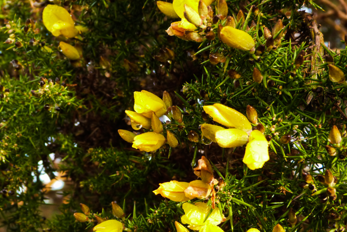 🔼 At the back of the dunes, gorse-scrub provides a perch for this sparrow 🔽 It is said the gorse flower blooms when there’s an ‘r’ in the month