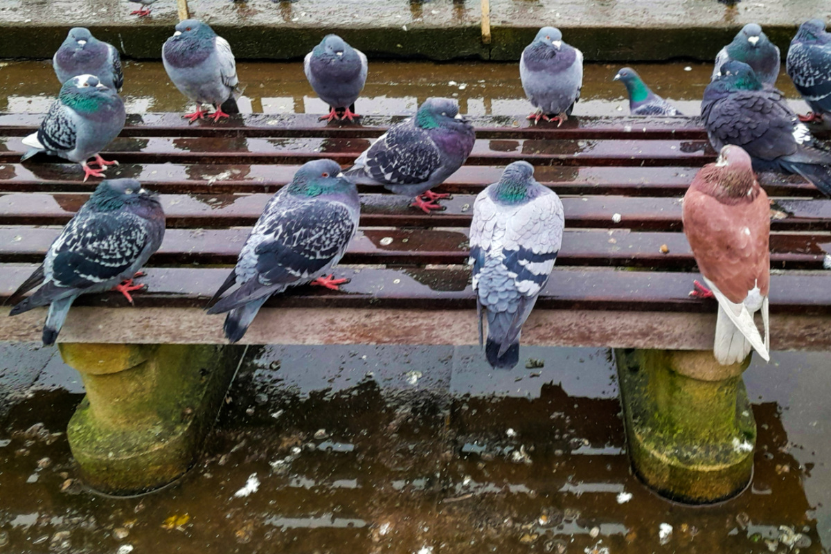 🔽 These pigeons are surely missing the tidbits and scraps they usually enjoy, here at the top of the market where people sit to eat whatever their choice of fast-food, but not today