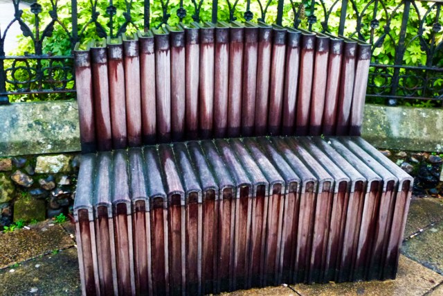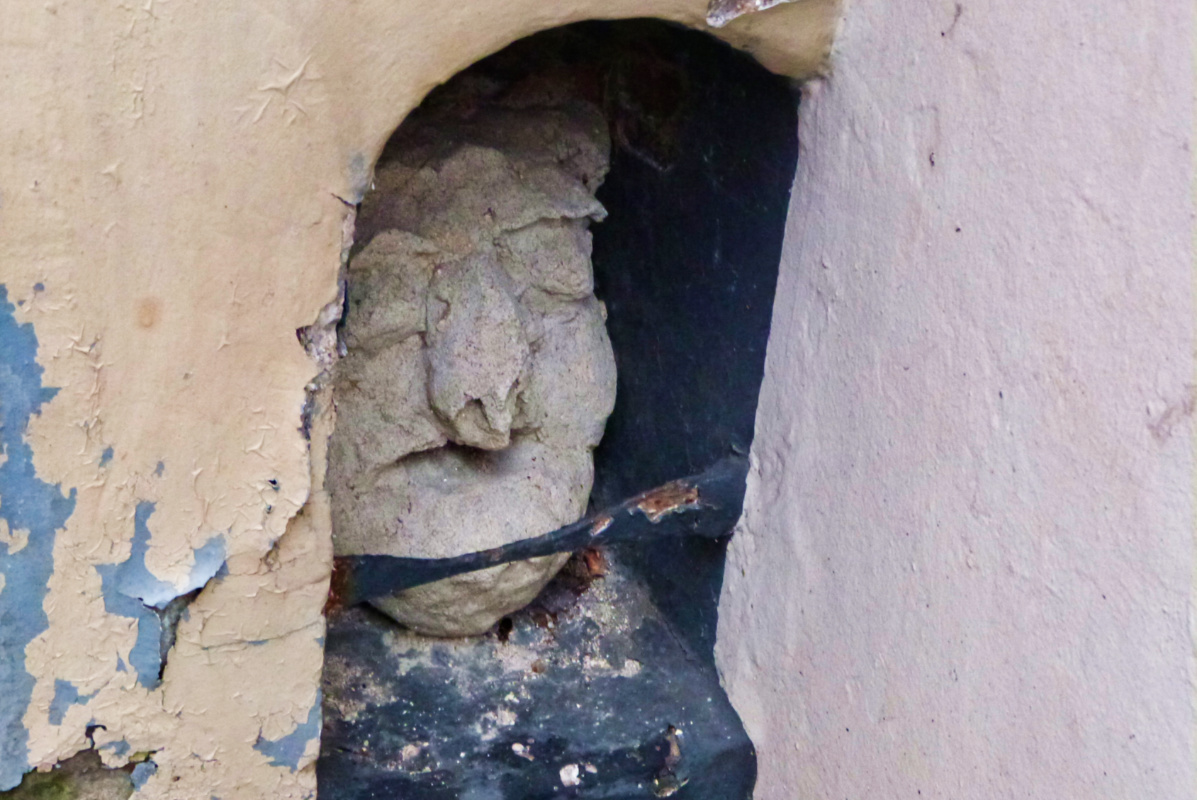 🔼 Why not take a rest on these books? But not when they’re wet 🔽 The niche is an old boot scrapper, at one time every house had one. As to the ‘sculpture’ nestled there, that makes me think of the Roman lares. Maybe its the guardian of the house?