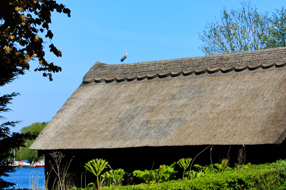 As we near South Walsham (part of the Broads) we find an area of fen. Love fenland flowers πΌ Marsh marigolds blind us with their golden petals π½ Reed thatch is the favoured roofing in the Broads. See that heron on the ridge?