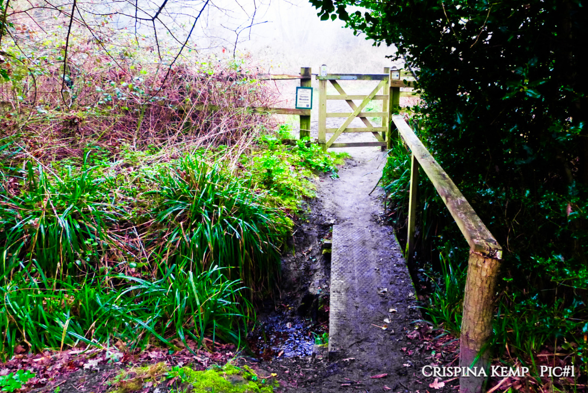 🔼 I enter the woods from the meadow and turn back to take this photo… cos I have a love of bridges and gates 🔽 Clearly a fairly recent addition to the woods. Loads of cherry trees here, but for now we’re happy to see the primroses and daffodils