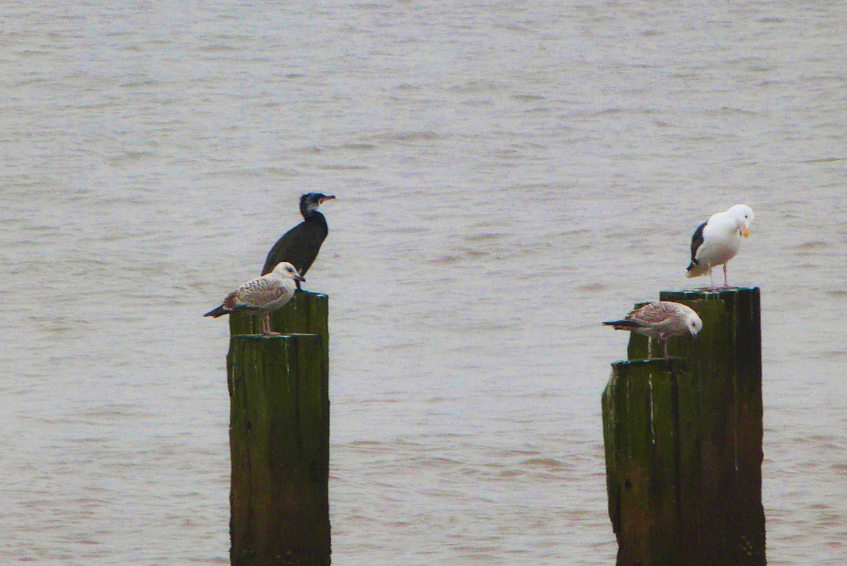 🔽 And we can’t leave the shore without seeing seabirds! A cormorant and 3 great black backed gulls, one mature, two immature